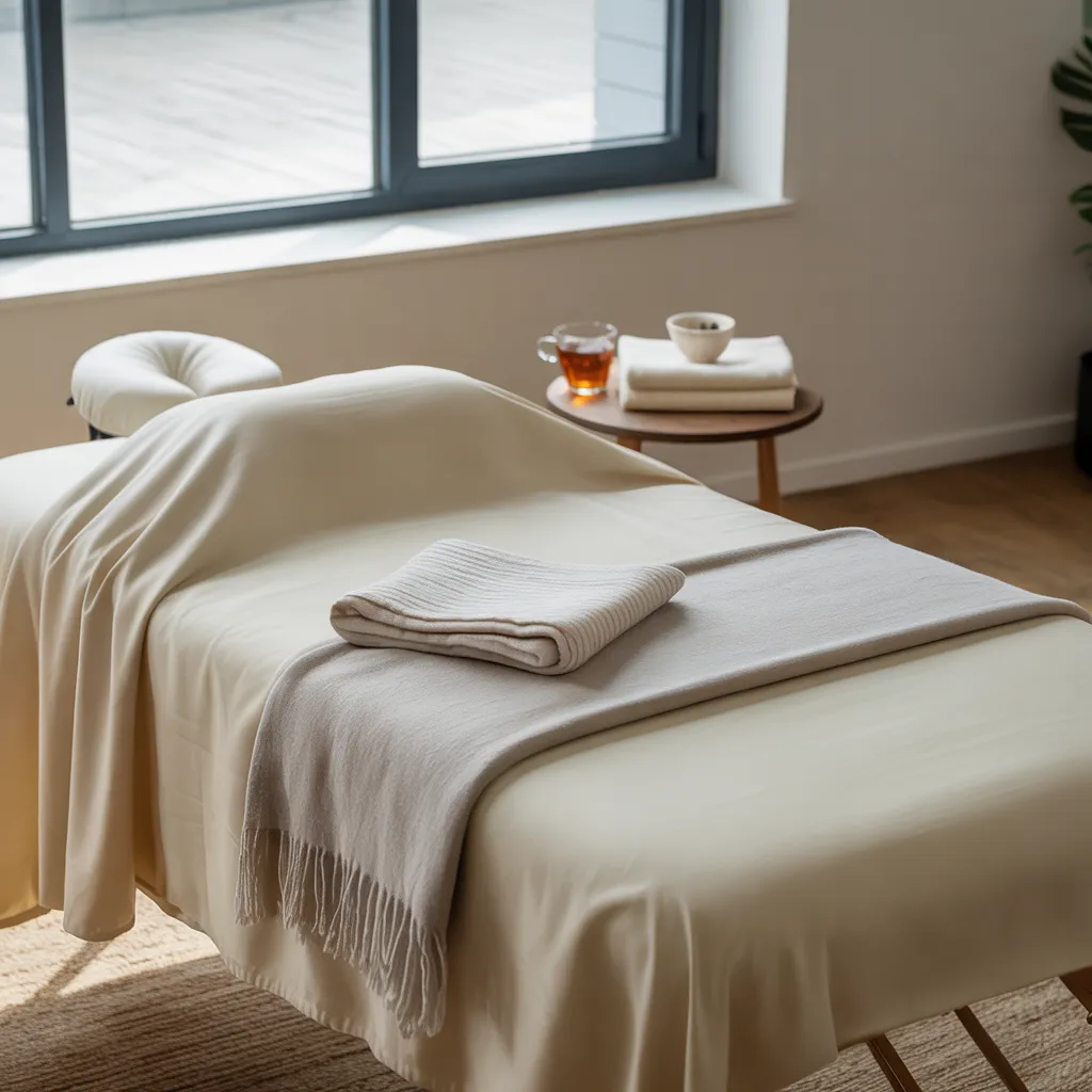 In the course of a postpartum massage, it is advisable to wear relaxed, baggy clothing. Most people choose to remove clothing to their personal comfort, often using a drape for coverage while maintaining convenient access for the massage therapist.